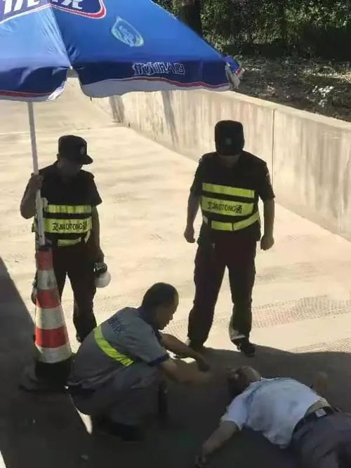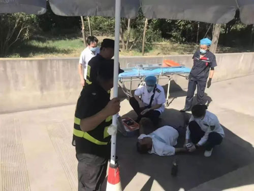 公司駐漢城服務(wù)區(qū)的保安康振偉在巡查場地時發(fā)現(xiàn)該情況,及時撥打了120急救電話,并向服務(wù)區(qū)工作人員匯報。工作人員第一時間趕到現(xiàn)場,因擔心挪動會加重其傷勢,康振偉協(xié)助工作人員一起搬來遮陽傘為其遮擋陽光,避免暴曬,同時幫助該司機師傅鎖好車門以免財物丟失,隨后守在司機旁邊等候救護車的到來。